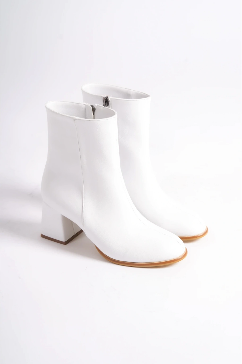 Beyaz Kadın Topuklu Bot | Günlük ve Şık Kısa Topuklu Fermuarlı Bot | Yeni Sezon Moda Ayakkabı Boots