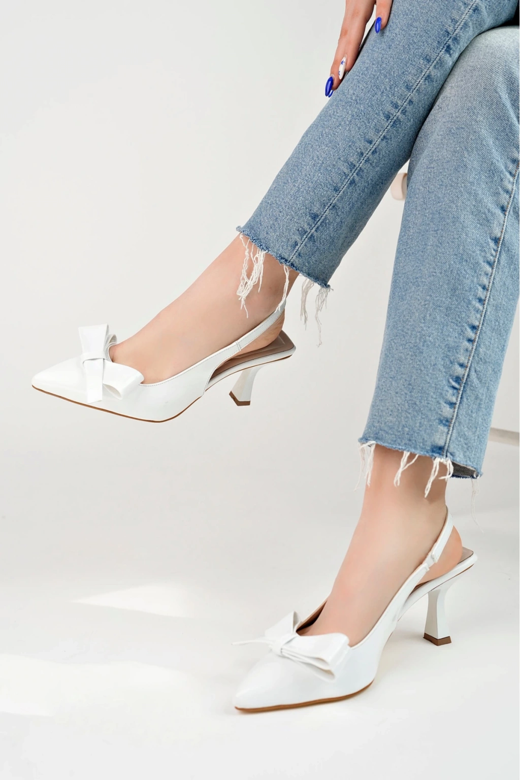 - Günlük kullanım için ideal, rahat ve şık tasarımıyla dikkat çeken siyah topuklu ayakkabı.- Orta boy ince topukları sayesinde hem konforlu hem de zarif bir duruş sunar.- Sivri burun tipi ile modern ve feminen bir görünüm sağlar.- Tokalı detayları ile sofistike bir stil vurgusu yapar.- Her mevsime uygun, casual ve günlük ortamlarda rahatlıkla tercih edilebilir.- Bantlı bağlama şekli pratik kullanım imkanı tanırken, ayak bileğini destekler.- Düz deseniyle kolayca kombinlenebilir; her türlü kıyafetle uyum sağlar.- Suni deriden üretilmiş astarı ve iç taban materyali ile uzun süreli konfor sunar. - Ortopedik taban desteği sayesinde gün boyu rahatlık hissi verir.