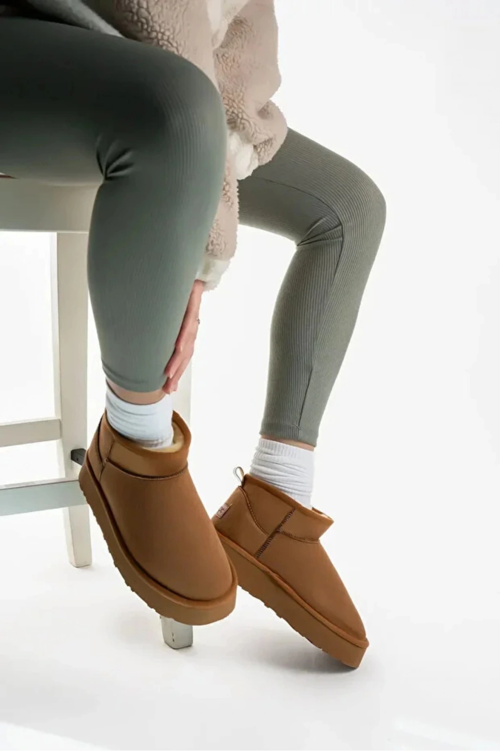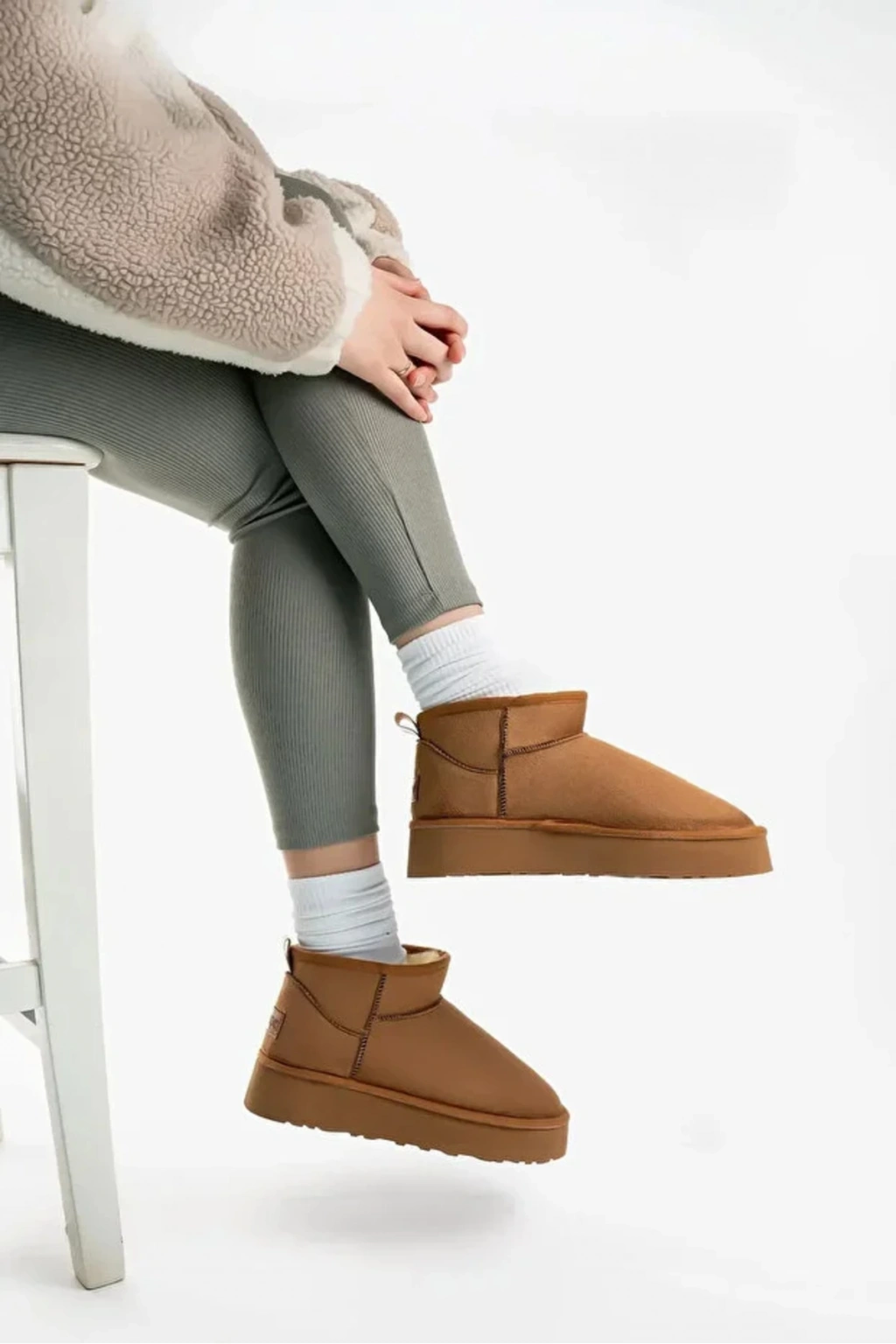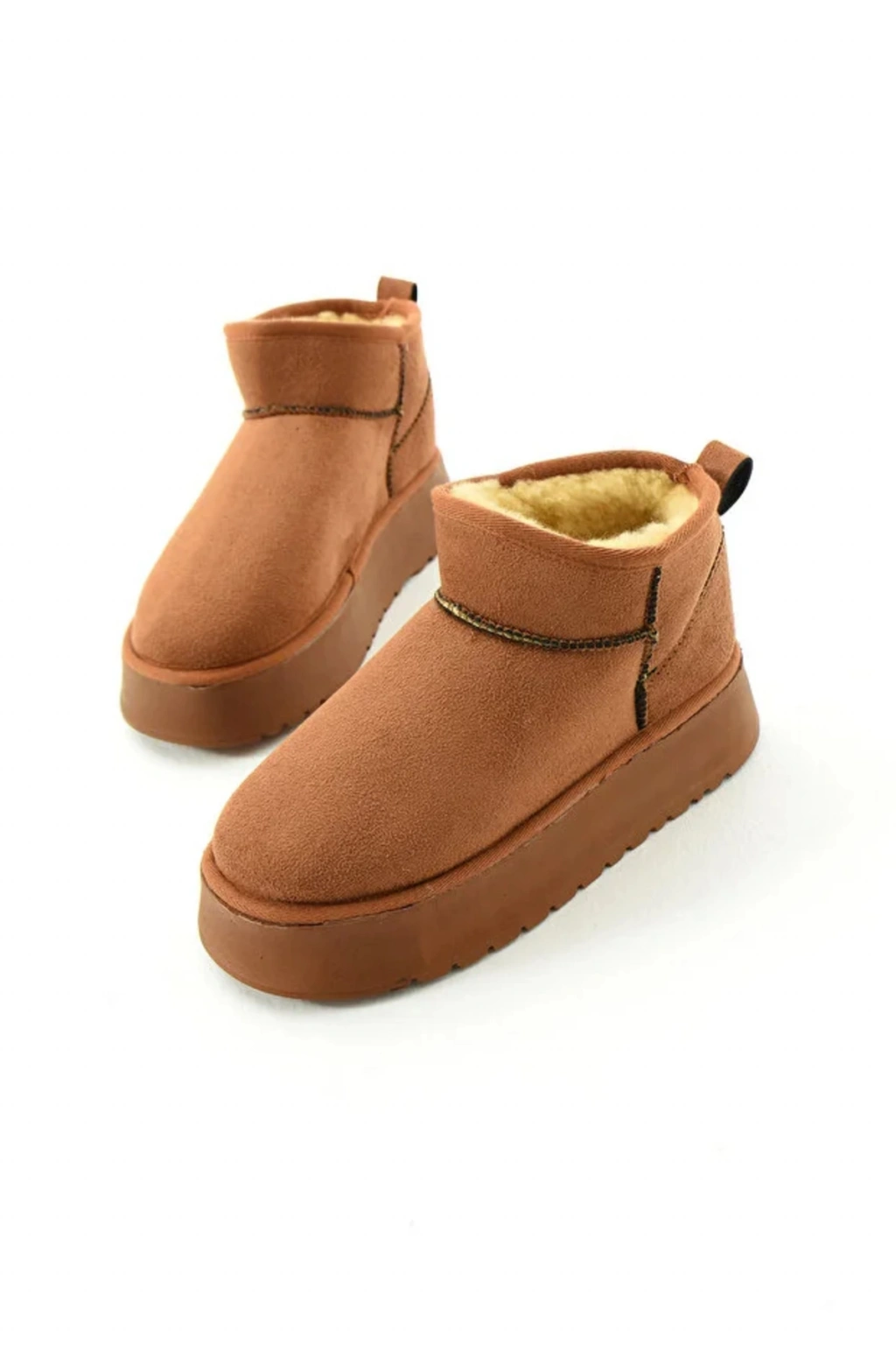 Mini Acı Kahve Süet İçi Kürklü Kalın Taban Kadın Bot