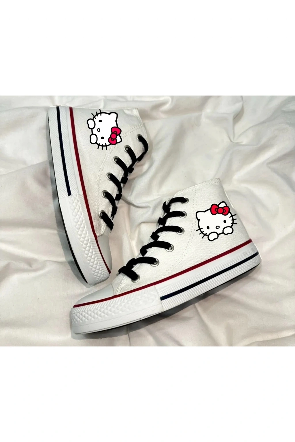 - Hello Kitty temalı tasarımıyla çocukların beğenisine sunulan bu spor ayakkabı, onların tarzını yansıtır.; - Siyah bağcık detayı ile hem şıklığı hem de rahatlığı bir arada sunan bu ayakkabı, günlük kullanım için idealdir.; - Beyaz bilek kısmı sayesinde konforlu bir kullanım sağlar ve ayakkabının ayağa tam oturmasına yardımcı olur.; - Kauçuk taban materyali ile kaygan zeminlerde bile üstün tutuş gücü sunar; güvenli adımlar atmanız için tasarlanmıştır.; - Sürdürülebilirlik detayı bulunmayan bu ayakkabı, çevre dostu malzemelerden üretilmemiştir; ancak kaliteli yapısıyla öne çıkar.; - Tekstil saya materyali hafiflik ve nefes alabilirlik sunarak çocukların gün boyu konforunu artırır.; - İç astarının da tekstilden yapılmış olması ayağı sıcak tutarken yumuşak bir dokunuş hissi verir.; - Üretim yeri Türkiye olan bu ürün, yerel üretim avantajlarıyla desteklenmiştir; kalite standartlarına uygun olarak üretilmiştir.; - Kısa topuklu (1 - 4 cm) tasarım, çocukların doğal yürüyüşünü destekleyerek sağlıklı gelişimlerini teşvik eder.; - Kadın / kız yaş grubuna hitap eden bu sneaker, hem kız çocukları için hem de erkek çocuklar için uygundur.; - Bağcıklı bağlama şekli sayesinde ayakkabının ayağa tam oturması sağlanırken, kolayca ayarlanabilirlik özelliğiyle pratik kullanım imkanı tanır.; - Dış yüzeydeki tekstil malzeme dayanıklılığı arttırarak uzun süreli kullanım vaat ederken aynı zamanda estetik görünümünden ödün vermez.; - Kaydırmaz taban tipi ile her türlü zeminde maksimum güvenlik sağlar; kayma riskini minimize eder.; - İç tabanında kullanılan tekstil malzemeden dolayı ayakların gün içinde rahat etmesini garanti ederken aynı zamanda hava akışını da destekler.; - Baskılı deseniyle göz alıcı detaylara sahip olan bu spor ayakkabı, Hello Kitty severler için mükemmel bir seçimdir.; - Düz topuklu yapısı sayesinde stabiliteyi arttırarak çocukların sağlıklı adımlar atmasına yardımcı olur; ideal yükseklikteki tabanıyla konfor sunar.