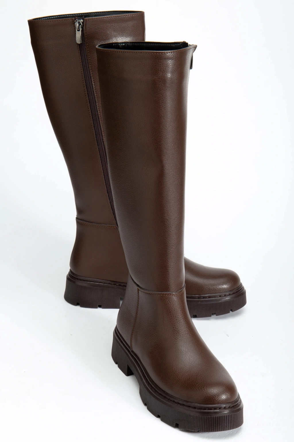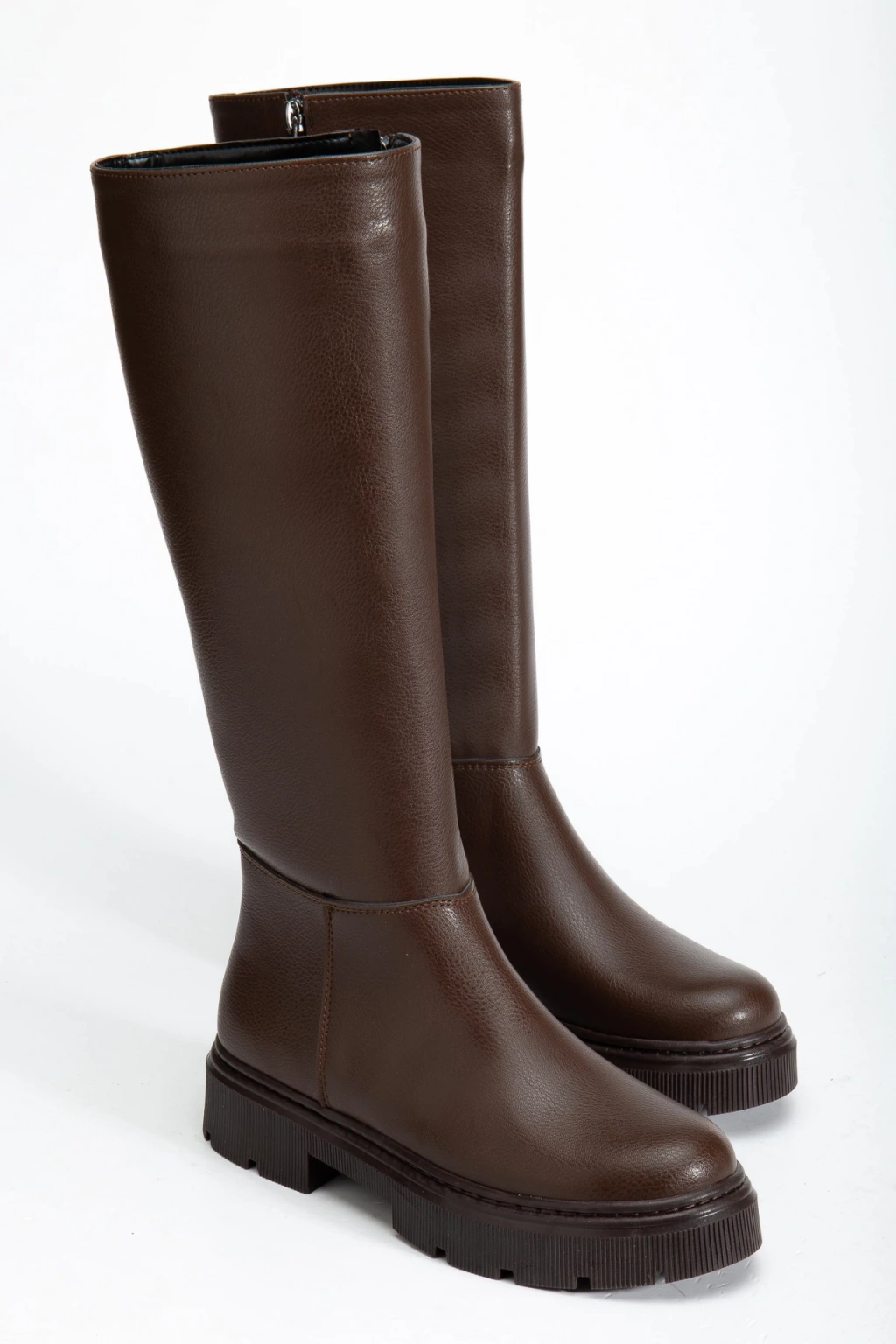 Günlük Düz Taban Çizme Acı Kahve Cilt Kahverengi Deri