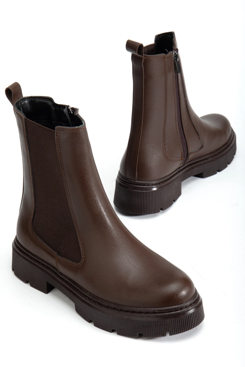 Kadın Acı Kahve Kalın Tabanlı Fermuarlı Chelsea Bot