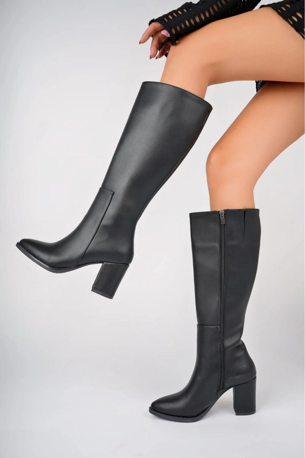 Kadın Siyah Diz Altı Fermuarlı Rahat Çizme