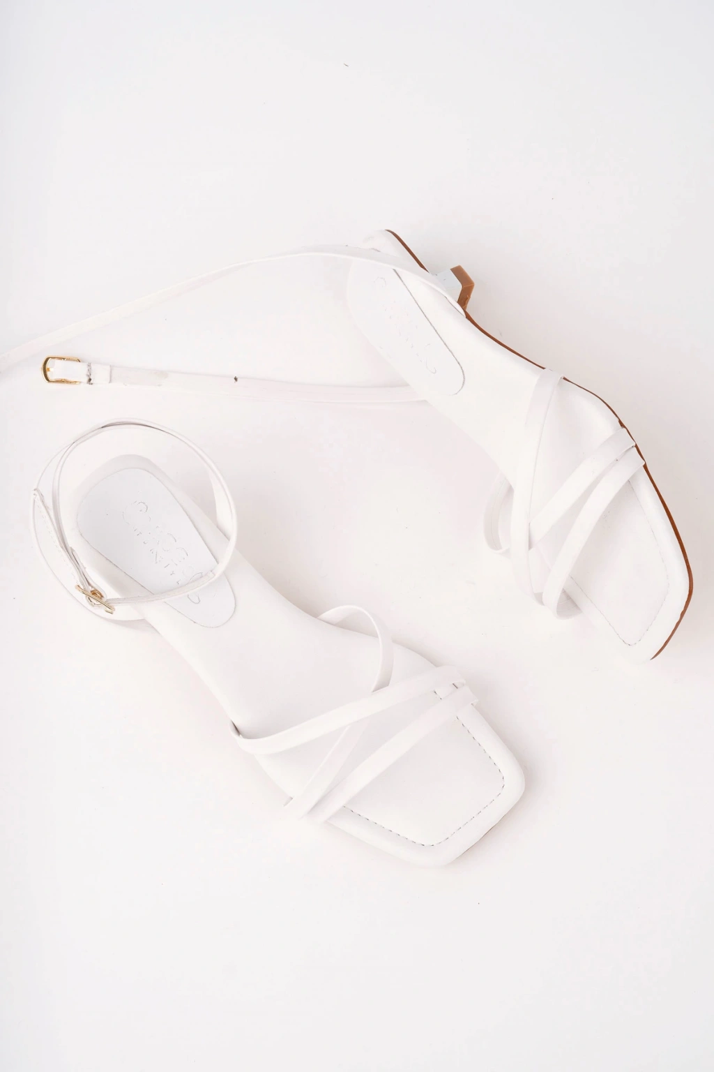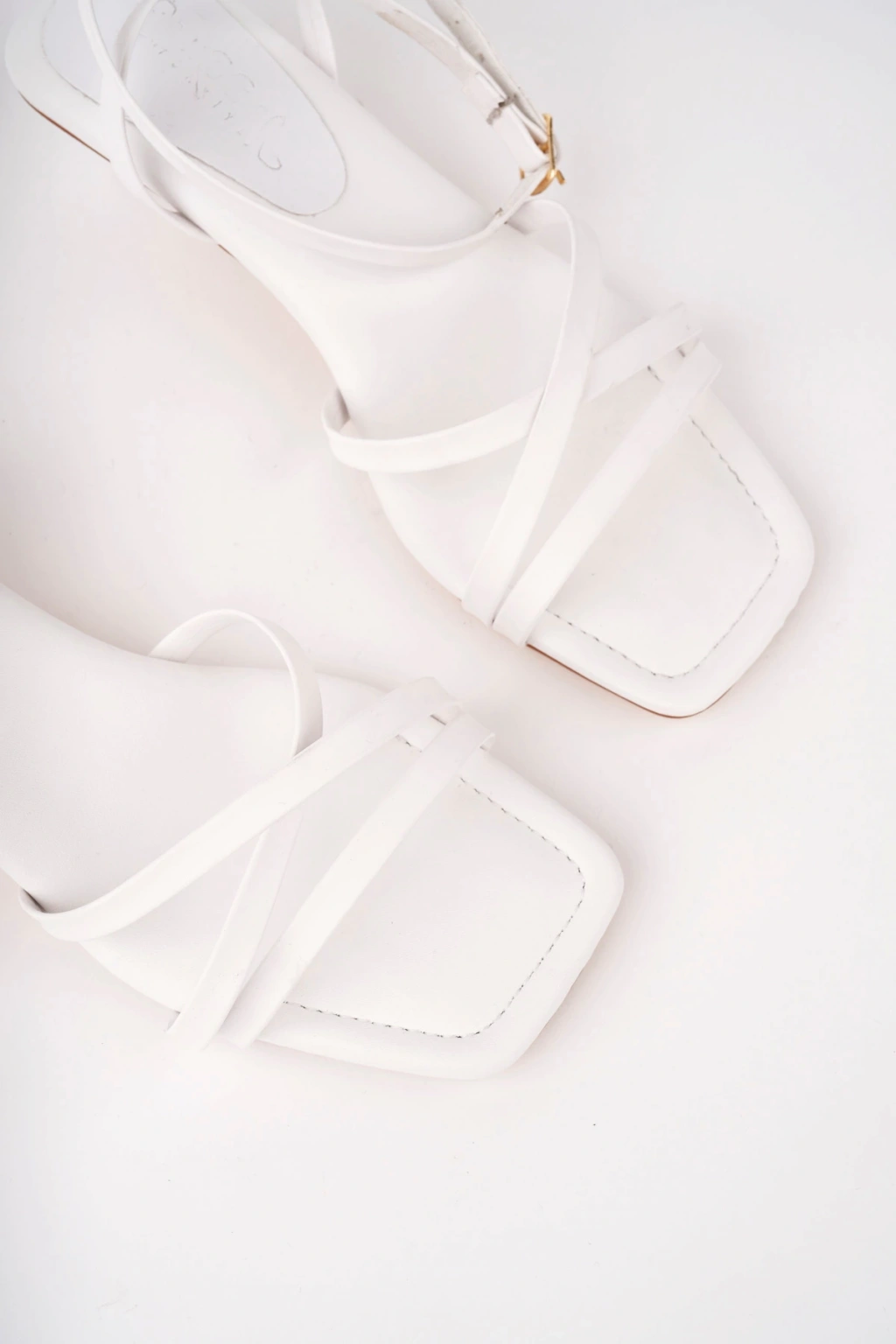 Kadın Sandalet İpli Günlük Beyaz Topuklu Sandalet Topuklu Ayakkabı Bantlı Sandalet