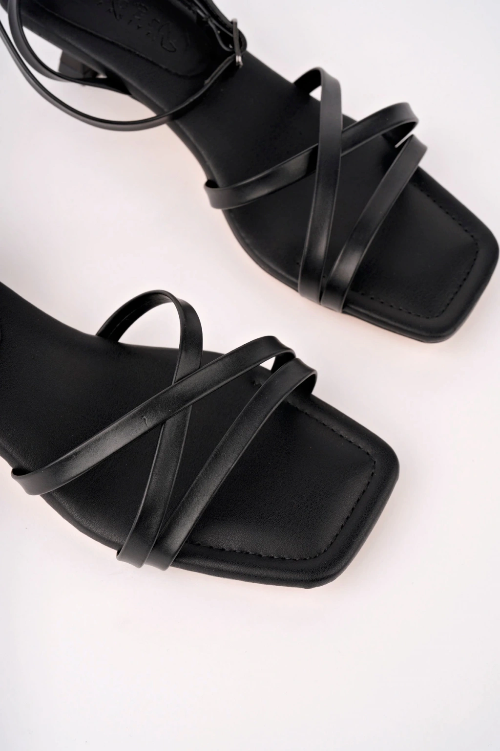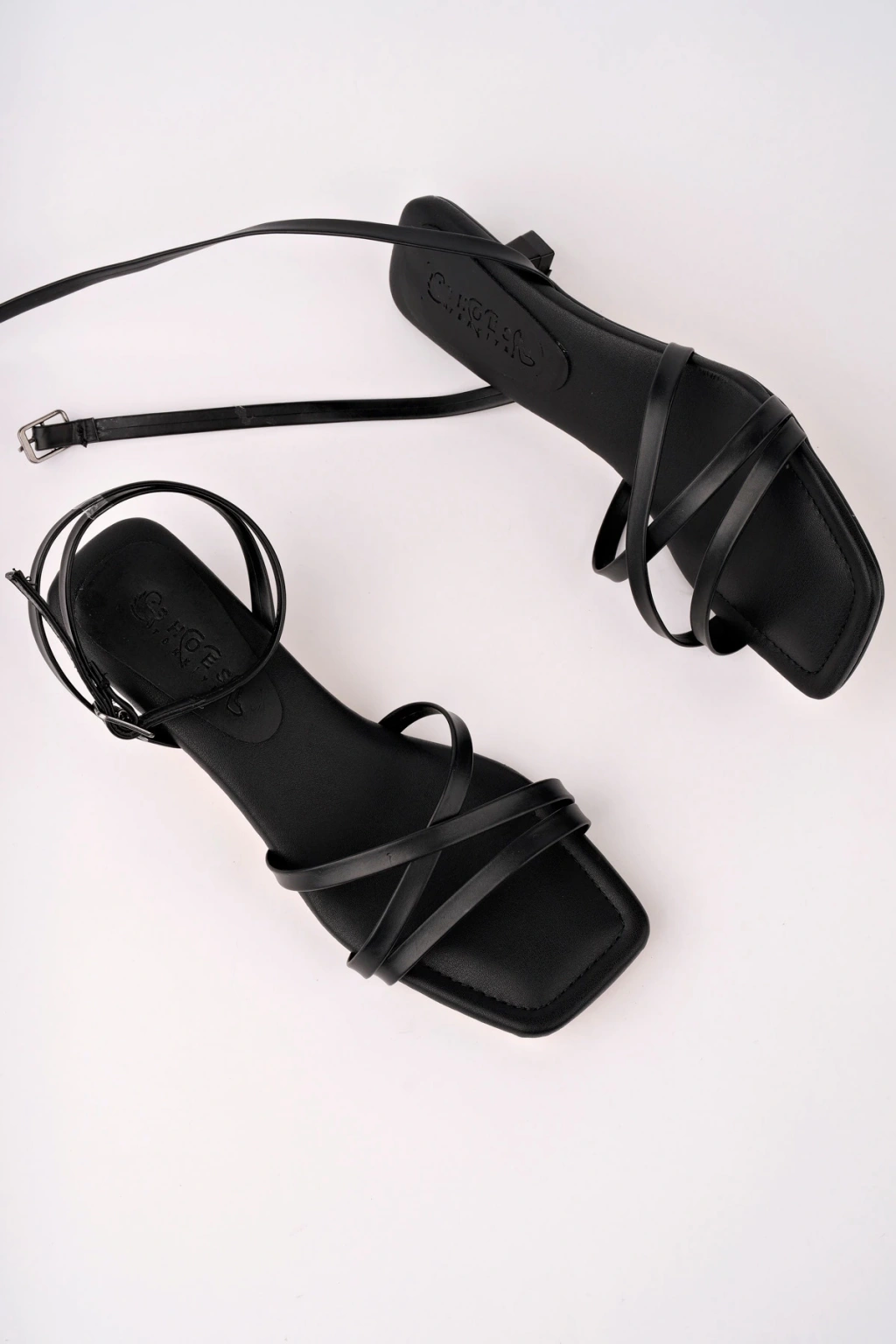 Kadın Sandalet İpli Günlük Siyah Topuklu Sandalet Topuklu Ayakkabı Bantlı Sandalet