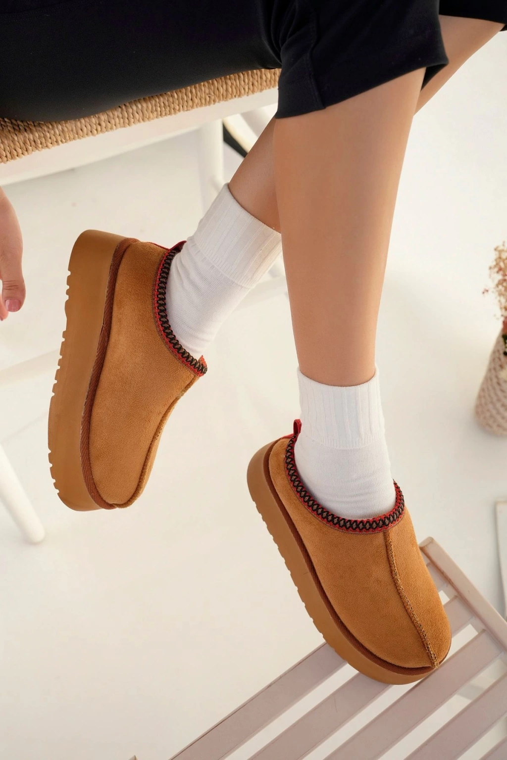 Mini Acı Kahve Süet İçi Kürklü Kalın Taban Kadın Bot