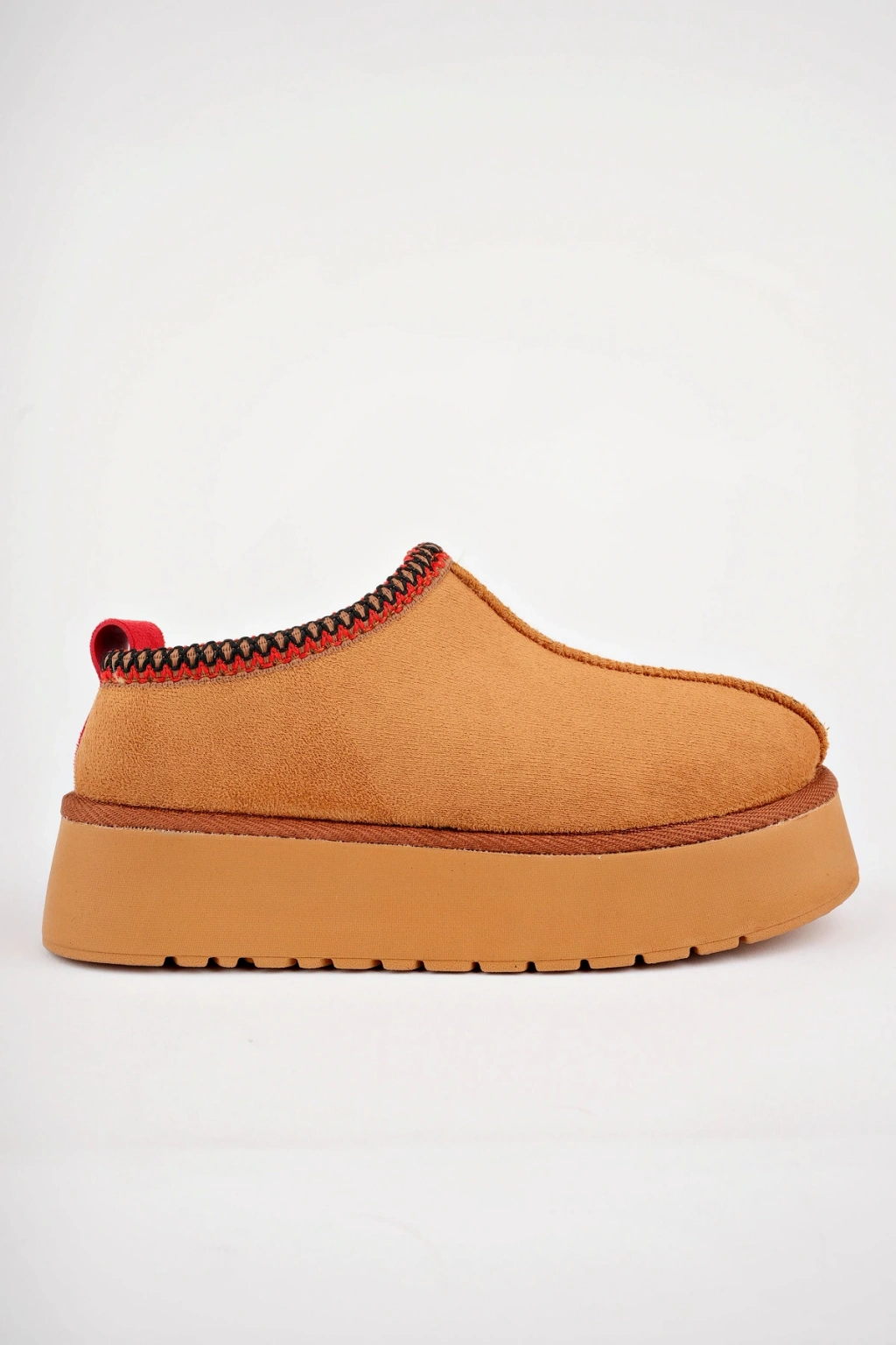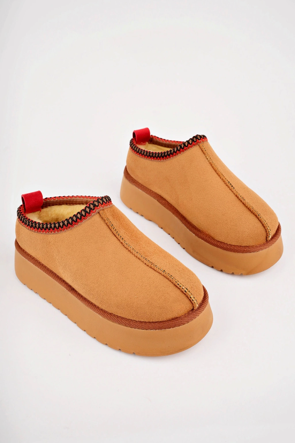 Kadın Taba Süet Düz Kürklü Mini Yarım Bot