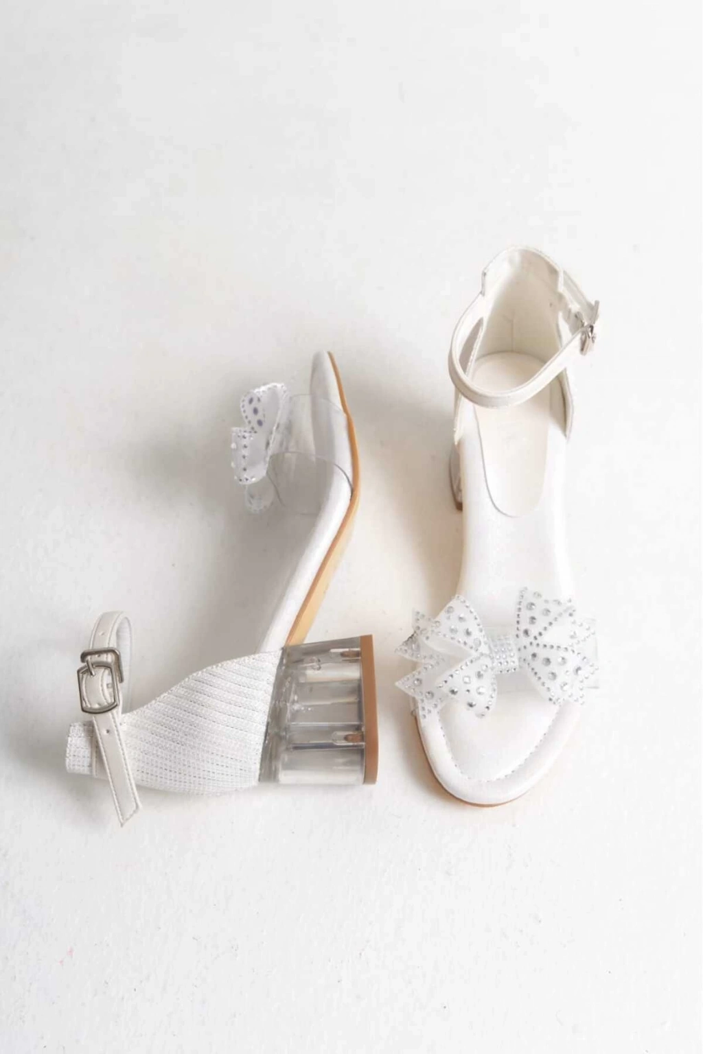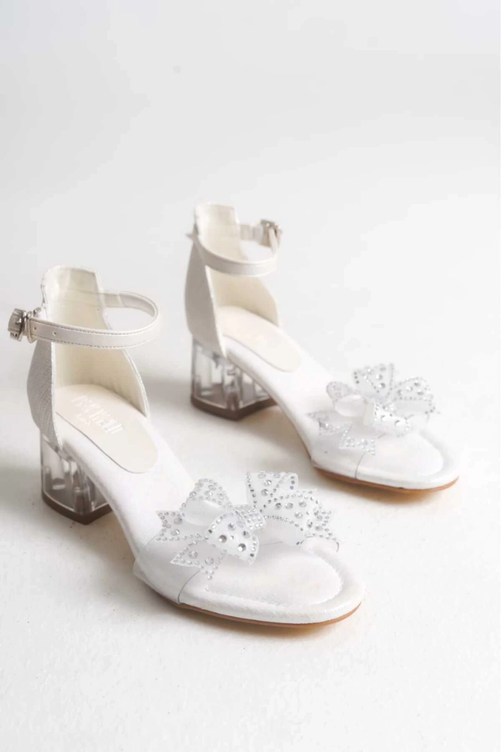 - Şeffaf topuk tasarımı ile göz alıcı bir görünüm sunar.; - Taş ve kurdele detayları, ayakkabının şıklığını artırırken aynı zamanda eğlenceli bir dokunuş katmaktadır.; - Rahatlık ve stilin mükemmel uyumu için kısa topuk boyu idealdir; hem konforlu adımlar atmanızı sağlar hem de zarif bir duruş sergiler.; - Kalın topuk yapısı sayesinde çocukların güvenle yürürken desteklenmesini sağlar.; - Yerli üretim olup, Türkiye'de üretilmiştir; kalite standartlarına uygun olarak hazırlanmıştır.; - Tekstil materyali hafiflik ve nefes alabilirlik özellikleriyle gün boyu rahatlık sunar.; - Bantlı bağlama şekli kolay giyip çıkarmayı mümkün kılarak pratik kullanım imkanı tanır.; - Çocuk kilidi özelliği ile küçüklerin ayakkabısını kaybetme endişesi olmadan keyifli zaman geçirmelerine olanak verir.