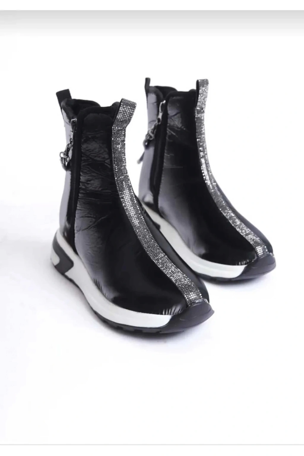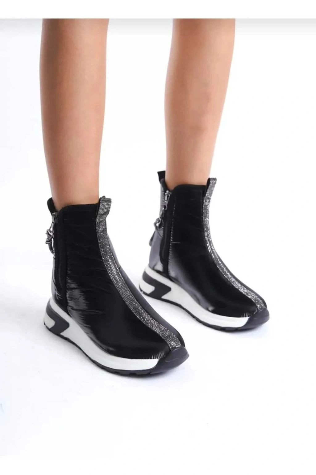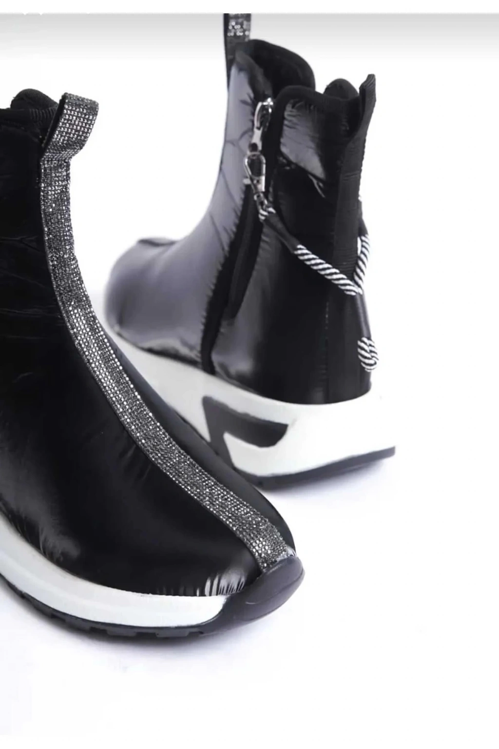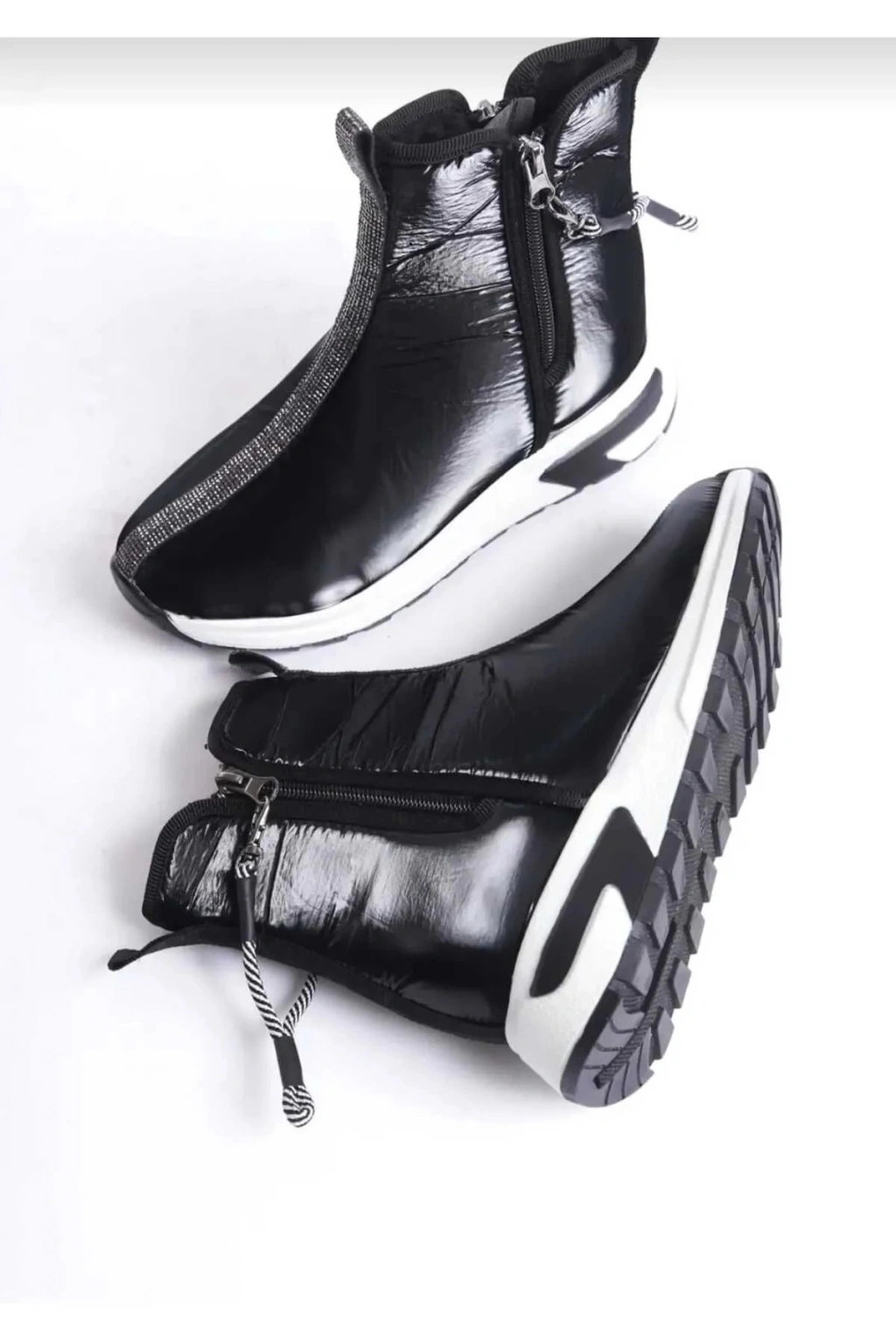 Su Geçirmez Paraşüt Kumaş Taşlı Siyah Spor Bot
