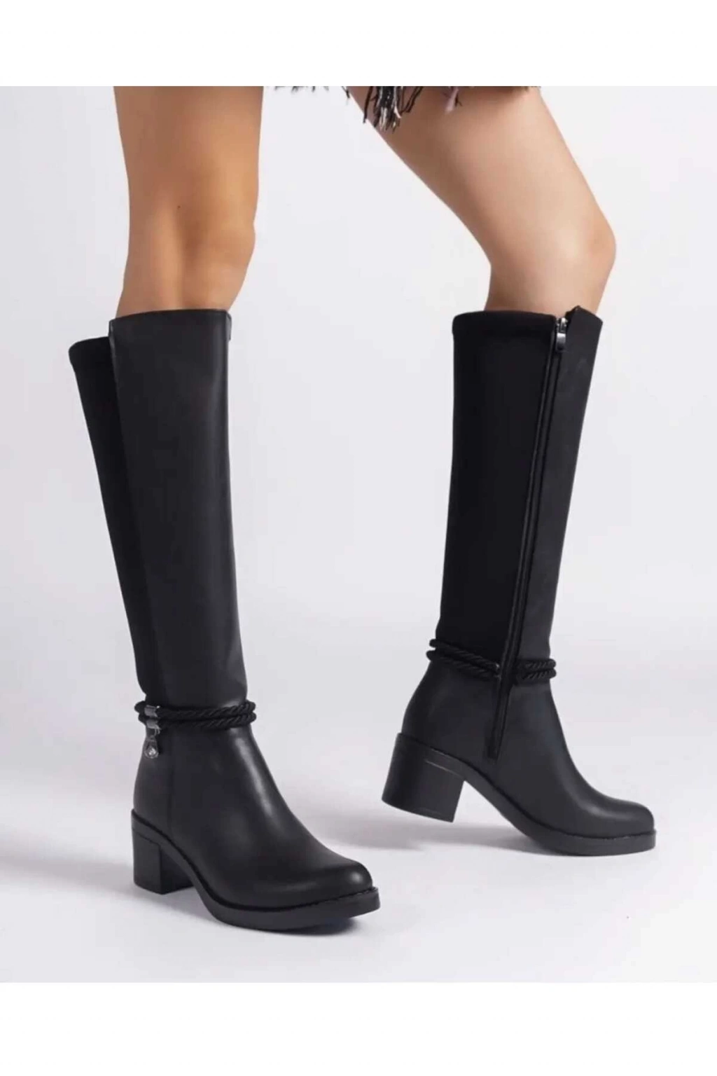 Kadın Siyah Diz Altı Fermuarlı Rahat Çizme